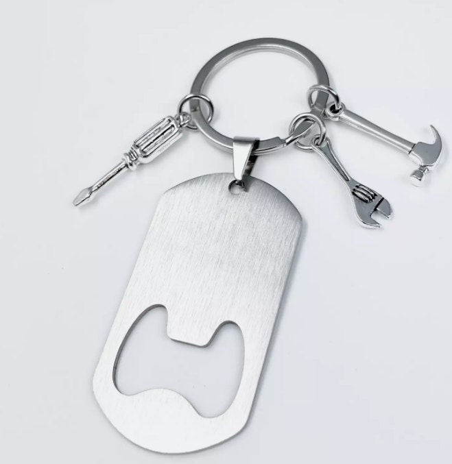 Personalised Bottle Opener Keyring – Custom Engraved Text in Silver | Gift for Men